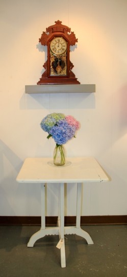 18th Century Mantel Clock by E.N. Welch in Excellent Working Condition $195; White Cottage Table $42