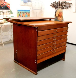 Huge Flat File Drafting Table & Contemporary Carving Indian Head (SOLD)