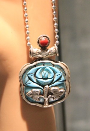 Tibetan Sterling Protection Amulet with Turquoise and Coral (SOLD)