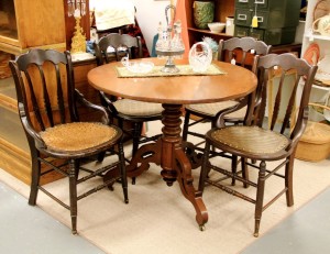 American Walnut Tilt-Top Table with Pedestal Base $295; Four Walnut Chairs $155 ~ Dealer 43