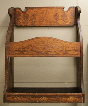 Antique Folk Art Pyrography Umbrella Holder with Great Drawings $145