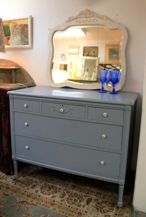 Five Drawer Blue Dresser & White Mirror (SOLD)