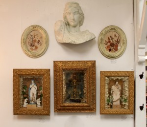 Lovely Plaster Bust of a Woman (SOLD); Pair of Antique Carved Oval Frames $55; Victorian Religious Shadowboxes $95 each ~ Dealer 617