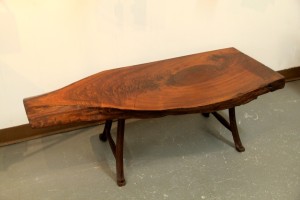 Walnut Slab Coffee Table with Antique Iron Legs by Daniel Quest