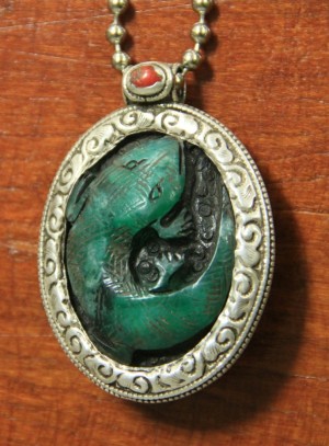 Antique Silver Tibetan Protection Amulet – Highly Carved Copal, Double Sided $119 ~ Dealer 27