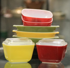 Vintage Pyrex Red Frig Dish, Yellow Frig Dish, Small Square Red Dishes & Small Oval Casseroles (SOLD)