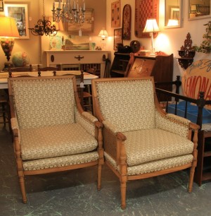 Sweet Vintage Upholstered Chairs with Caned Sides (SOLD)