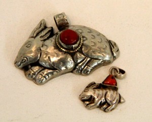 Tibetan Rabbit Amulets with Coral – Large $34, Small $27 ~ Dealer 27