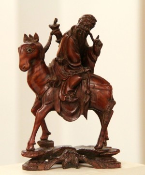 Mahogany Wild Eyed Horse with Backward Rider Chinese Carving (SOLD)