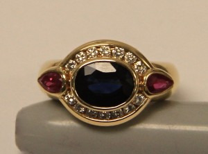 Gold Ring with Sapphire, Diamonds & Rubies (SOLD)