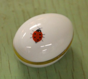 Lovely Limoges Egg-shaped Covered Box with a Hand-painted Ladybug (SOLD)
