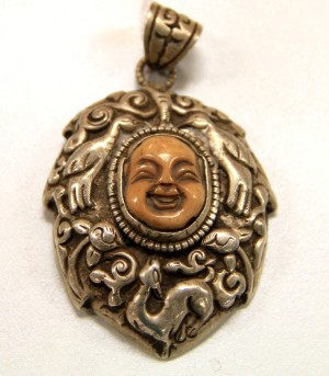 Antique Laughing Buddha Protection Amulet Sterling and Carved Bone $125 ~ Dealer 27