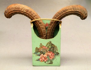 1920s Magazine Rack $45; Pair of Hand Carved Wood Feathers $225 ~ Dealer 422