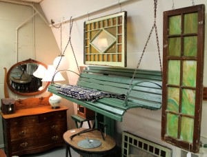 Solid Vintage Porch Swing (SOLD); Stained Glass Window (SOLD); Antique Green Slag Glass Window (SOLD); ~ Dealer 15