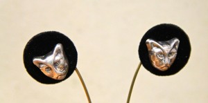 Grumpy Sterling Cat Earrings Signed Meow 925 $26.50 ~ Dealer 93