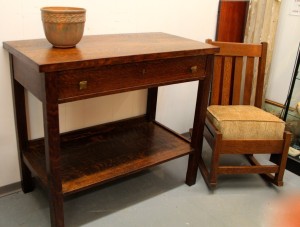 Mission Oak Server, ca. 1910 (SOLD); Petite Mission Rocker (SOLD)