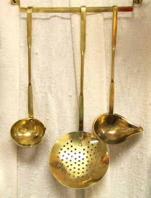 Three Matched Brass Utensils with Brass Hanging Bar (SOLD)