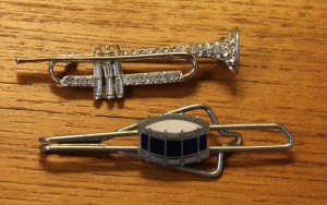 Vintage Rhinestone Trumpet Pin ($15) and Snare Drum Tie Clip ($12) ~ Dealer 47