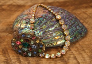 Multi-Colored Brooch, Possibly Czech $24; Irridescent Rhinestone Necklace $39 ~ Dealer 47
