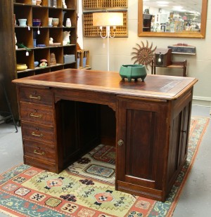 1880s Walnut Desk with Leather Top and Secret Side Door (SOLD)