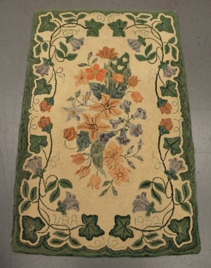 Vintage Hand-Hooked Rug with a Pretty Floral Floral Pattern, Signed “UDA” and Dated 1952 $85 ~ Dealer 422
