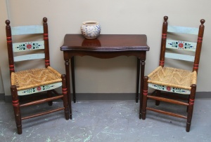 Pair of Painted Chairs $54; Antique Game Table (SOLD); Studio Pottery Bowl $29 ~ Dealer 99