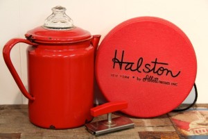 Vintage Red Enamel Coffee Pot $35; Red Jar Opener $12; Vintage Halston Hat Box (SOLD) ~ Dealer 313