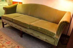Elegant Green Velvet Sofa with Lovely Swag Tack Detail $375 ~ Dealer 10
