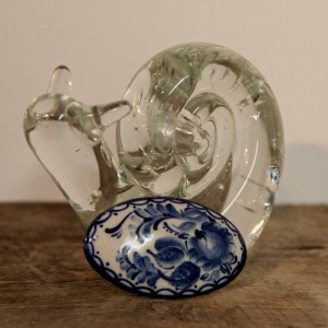 Blue and White Russian Brooch (Dealer 17), Glass Snail Paperweight (SOLD)