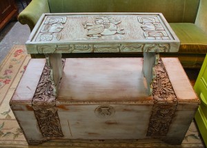 Small Carved Bench & Carved Trunk with Sweet Insert Trays (SOLD)