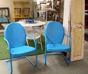 Pair of Blue Vintage Metal Spring Chairs (SOLD)