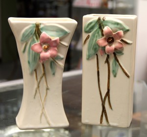 Vintage McCoy Blossom Time Pottery Vases $23 & $18 ~ Dealer 223
