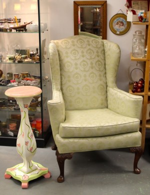 Antique Chippendale Wingback Chair from the Wickwire Estate in Cortland, NY $495, Fun Hand-painted Plant Stand $85 ~ Dealer 97