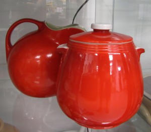 Vintage Hall Chinese Red Ball Pitcher $35 and Covered Jar $78 ~ Dealer 97