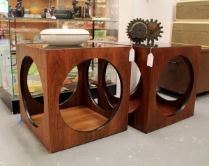 MidCentury Mod Lane Side Tables with Glass Tops (SOLD) Wooden Gear Molds $38 each ~ Dealer 617