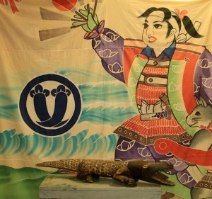 Handpainted, One of a Kind Japanese Boy’s Day Banner $425; Large African Crocodile Protection Sculpture $169 ~ Dealer 27