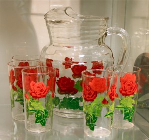 Vintage Red Rose Pitcher and Five Matching Tumblers (SOLD)