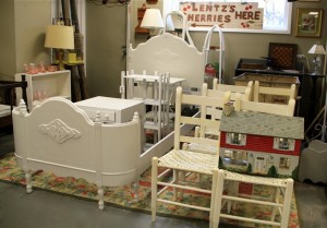 Sweet Painted Twin Bed $105; One-Drawer Stand $79; Bookcase $65 ~ Dealer 10