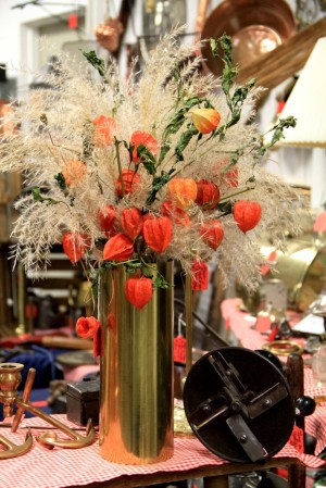 Tall Brass Container with Flowers (SOLD)