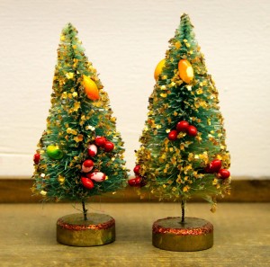 Two Bottle Brush Trees with Ornaments $5 ~ Dealer 17