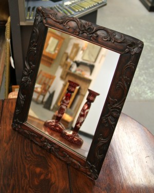 Antique Carved Rosewood Mirror $250; Pair of Bohemian Early 20th c. Ruby to Clear Candlesticks (SOLD) ~ Dealer 9