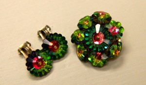 Watermelon Margarita Aurora Borealis Clip-on Earrings and Brooch $48.50 ~ Dealer 215