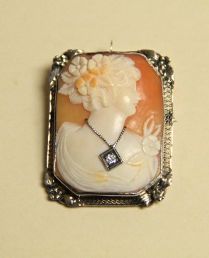 14K Diamond Shell Cameo Habillé (Pin or Pendant) $395 ~ Dealer 320