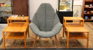 Adrian Pearsall Style Lounge Chair with New Upholstery Originally $625, Now $425; Pair of Modern End Tables $275 ~ Dealer 77