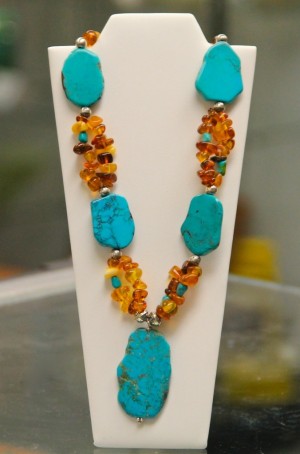 Sterling Silver, Turquoise and Amber 19″ Necklace $189 ~ Dealer 47