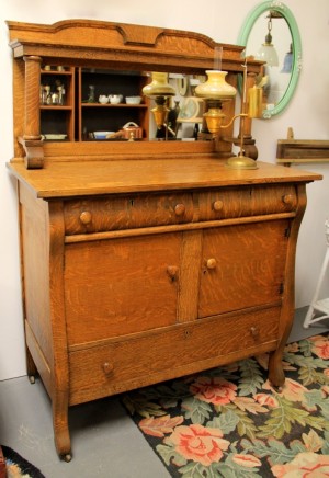 Beautiful Antique Oak Empire Server with Mirror and Key (SOLD)