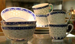 Four Delicate Cups & Saucers and Three Rice Bowls (SOLD)