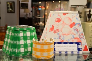 Tablecloth Print Lampshades Made from 1940–60s Tablecloths by Domestic Dude $30-$48