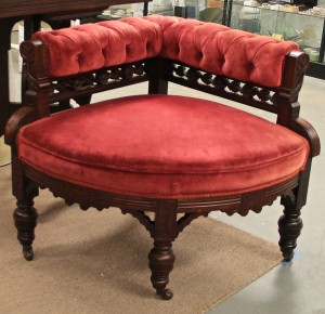 Aesthetic Movement (c. 1870s) Walnut Corner Chair with Heavy Carving (SOLD)