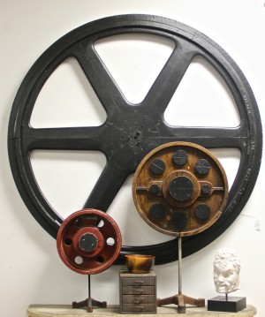 Industrial Casting Wheels on Stands $125 & $165; Tin 4-Drawer $32 ~ Dealer 15